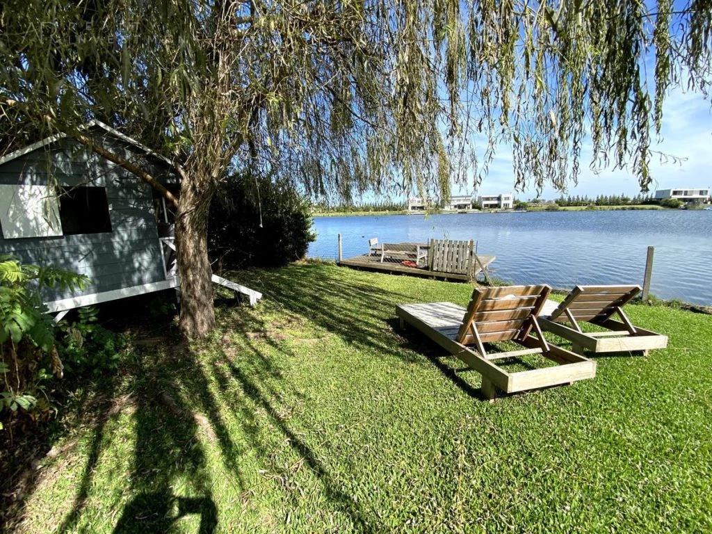 En planta baja también hay playroom y escritorio. La cocina tiene isla con desayunador, muebles de alto y bajo mesada. El comedor está semi integrado a la cocina. Todo con vista a la laguna y salida a la galería y al jardín.