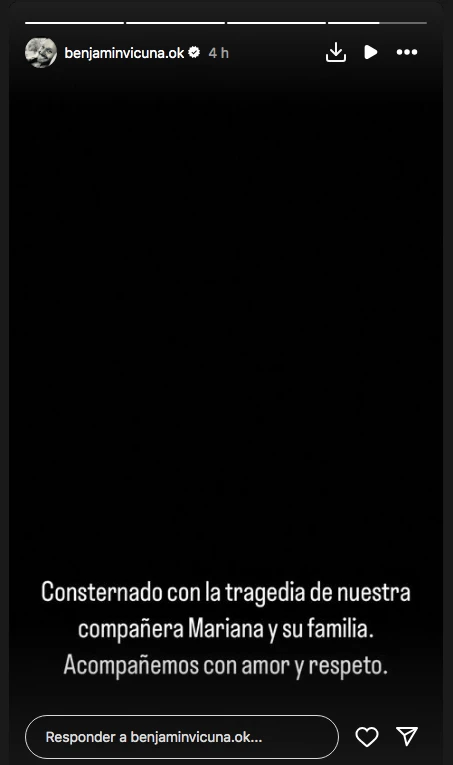"Consternado con la tragedia de nuestra compañera Mariana y su familia. Acompañemos con amor y respeto", escribió el chileno en un posteo que realizó en sus Historias de Instagram.