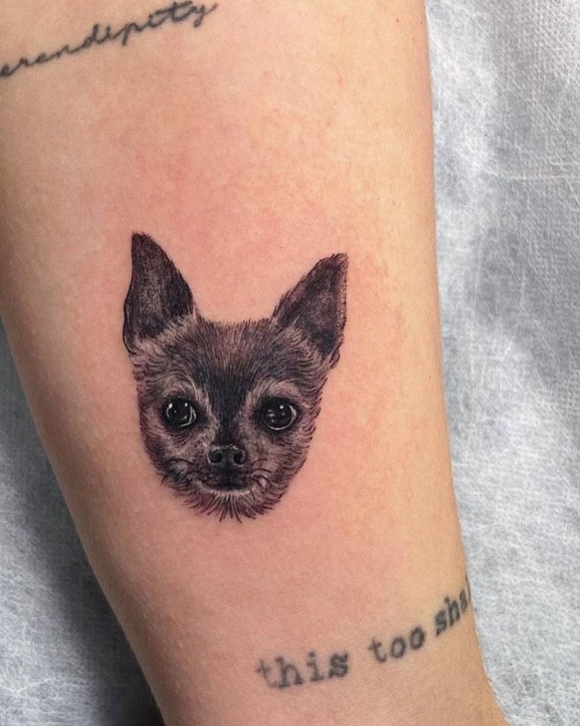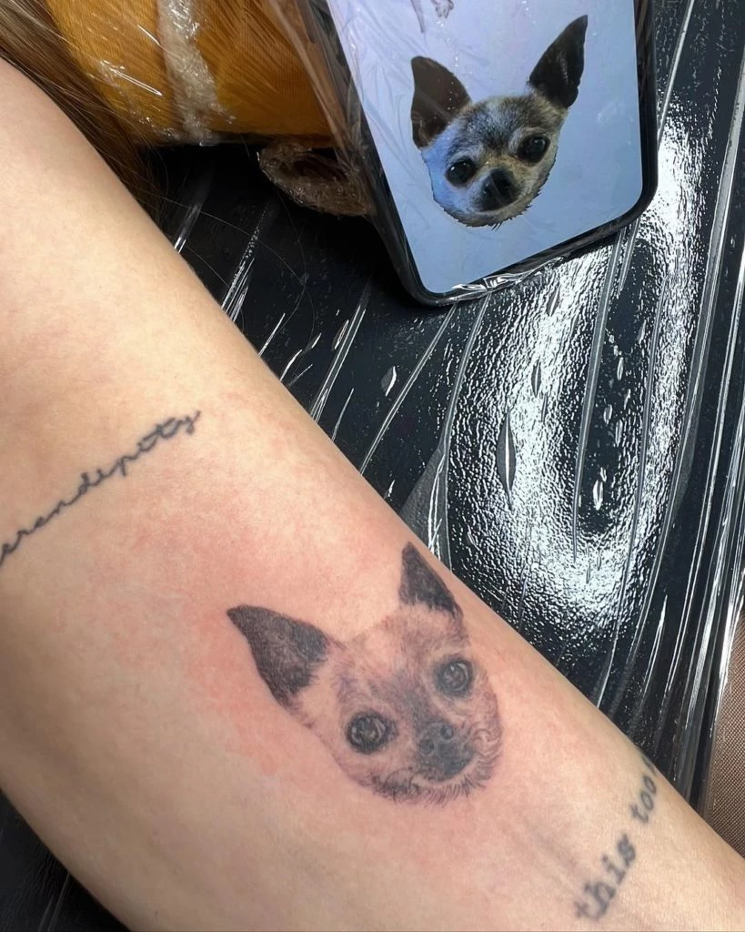 Los tatuajes de mascotas fallecidas se volvieron muy populares en los últimos años ya que representan la lealtad y la fidelidad incondicional. Muchos de ellos son minimalistas, con huellas o símbolos, y otros se animan a los retratos realistas, como el caso de Mica, que quiso representar al can en su juventud.