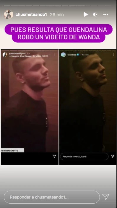 La chica trans también publicó un videíto de Icardi en sus Historias. Sin embargo, según la cuenta Chusmeteando, Guendalina le habría "robado" esas imágenes del futbolista a Wanda Nara.