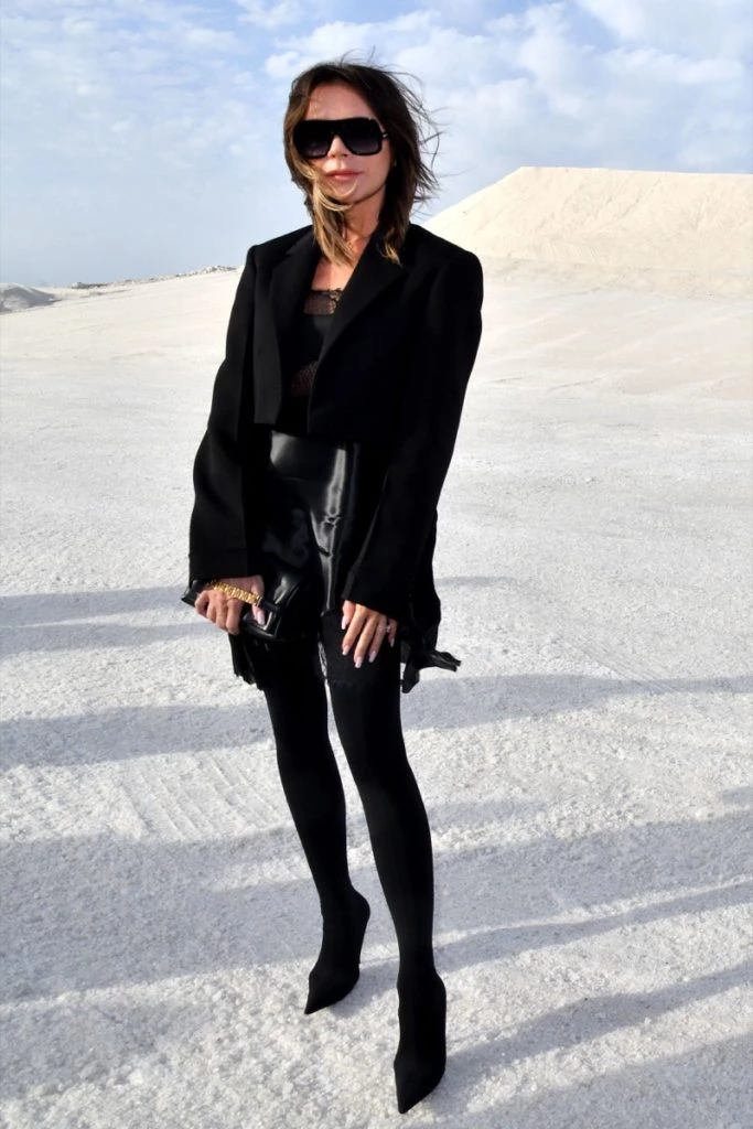 La ex Spice girl fue una de las invitadas que más llamó la atención ya que su look total negro contrastaba a la perfección con el inmenso escenario blanco lleno de sal.