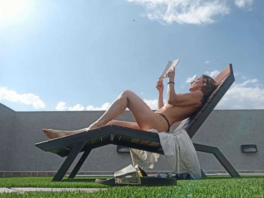 Viviana Saccone es parte del elenco de SEX, la obra de José María Muscari, en el Teatro Melos de Villa Carlos Paz. Instalada en las sierras de Córdoba, llamó la atención compartiendo en sus redes dos fotos haciendo topless mientras lee un libro.