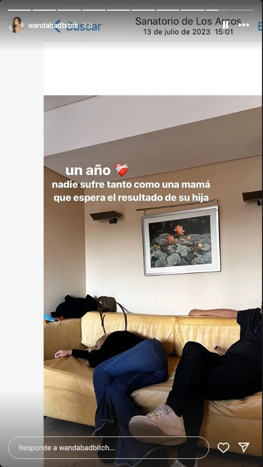 Nara se remontó a julio de 2023 cuando había recibido su diagnóstico de leucemia, algo que significó un quiebre en su vida. En las imágenes publicadas, la mediática mostró a su madre dormida en el sillón, acompañándola en aquel momento. "Un año. Nadie sufre tanto como una mamá que espera el resultado de su hija", escribió.