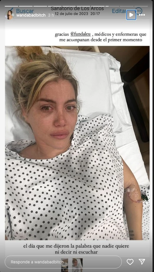 Por medio de Instagram Stories, la empresaria se sinceró con sus seguidores y publicó una foto en la que se la puede ver con lágrimas en los ojos y con expresión devastadora. "El día que me dijeron la palabra que nadie quiere ni decir ni escuchar", expresó, al tiempo que, volvió a agradecer al equipo médico que la acompañó en ese entonces.