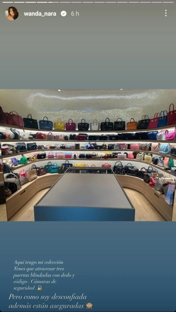 Además, se refirió al tema de la seguridad de este sitio ya que sus vestidores tienen carteras que valen millones de dólares y que son de firmas exclusivas. "Acá tengo mi colección, tenés que atravesar tres puertas blindadas con dedo y código. Cámaras de seguridad", explicó. "Soy desconfiada y además están aseguradas", agregó.