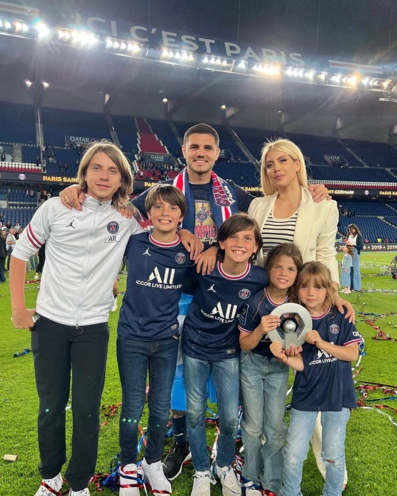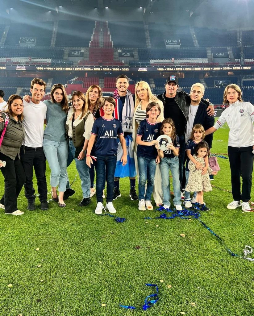 "Feliz de acompañarte, de verte crecer y compartir con vos el premio más grande...nuestra familia. Felicidades campeón", escribió Nara junto a varias postales de su familia desde el Parque de los Príncipes. En las fotografías podemos ver a Icardi, con la camiseta del PSG y una bandera argentina, junto a sus hijas Isabela y Francesca, y los hijos de Maximiliano López, Valentino, Benedicto y Constantino.