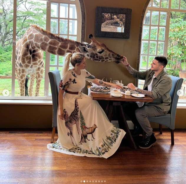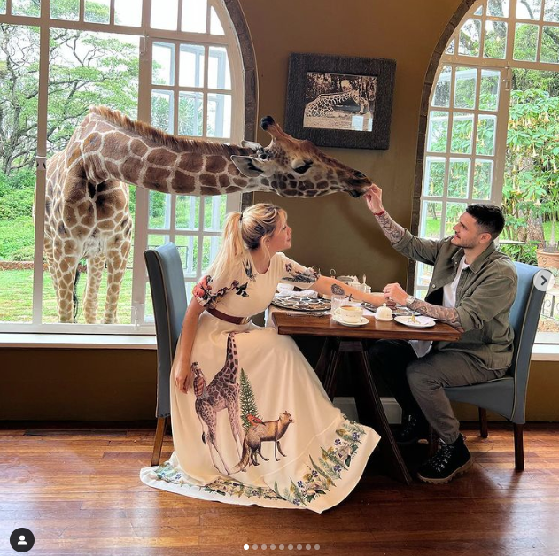 Su última publicación los ubica en el exclusivo hotel Giraffe Manor, emplazado en una mansión a puro lujo ubicada en la ciudad de Nairobi, en Kenia.