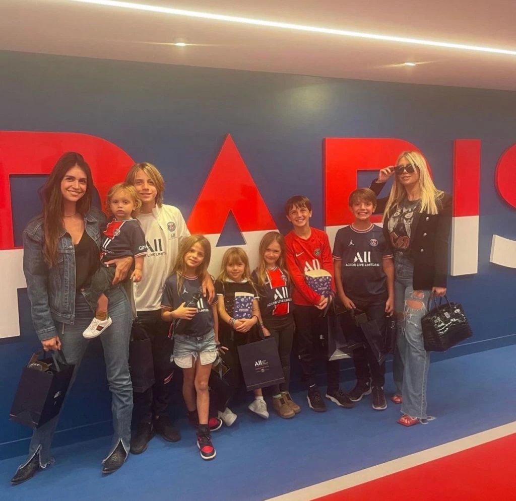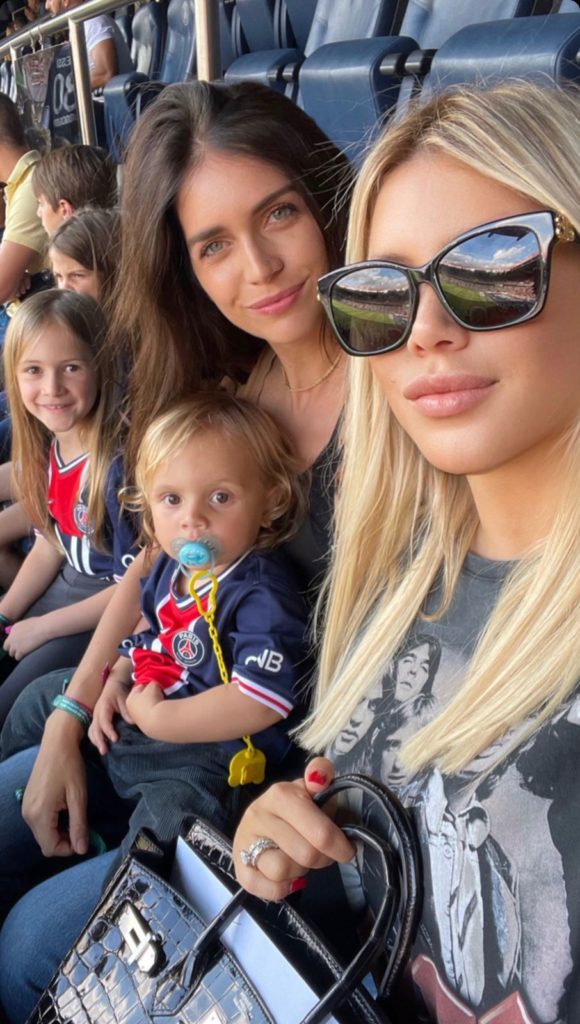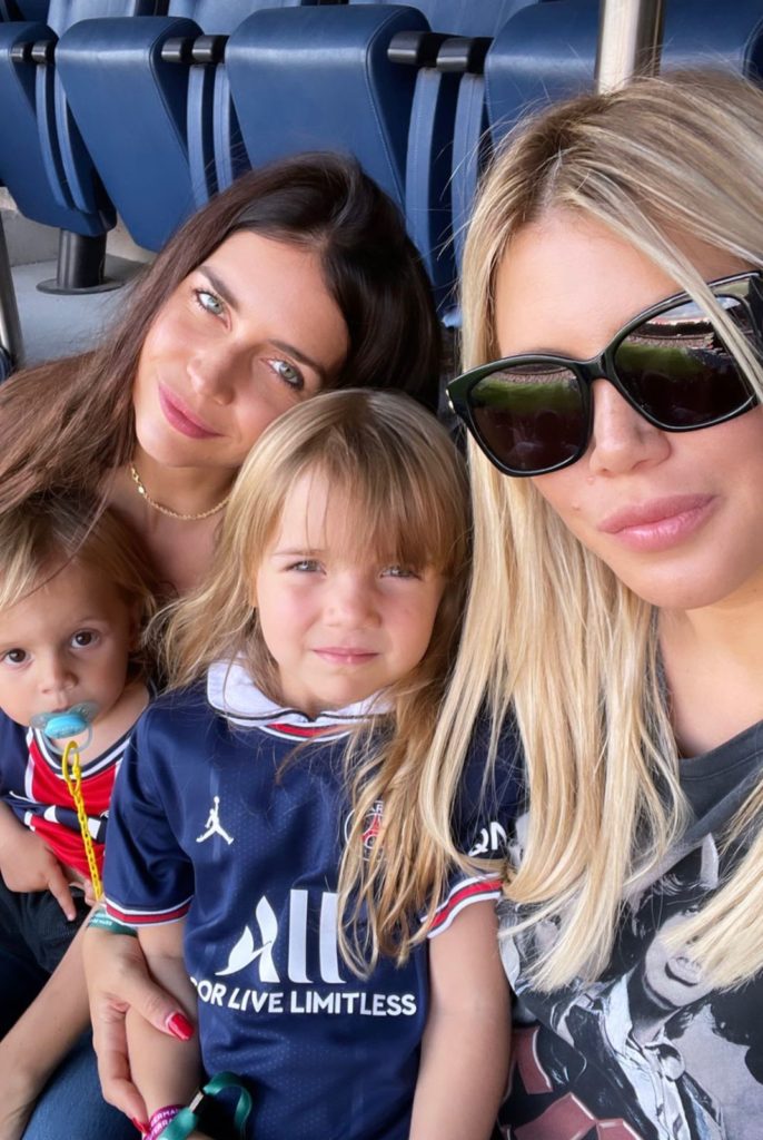 Zaira y Wanda vistieron a sus hijos con camisetas representativas del equipo francés y en gran plan familiar, vieron el partido y gritaron los goles del equipo donde ahora también juega Lionel Messi -aunque el argentino no estuvo en el campo esta vez, sino que vio el match desde las tribunas-.