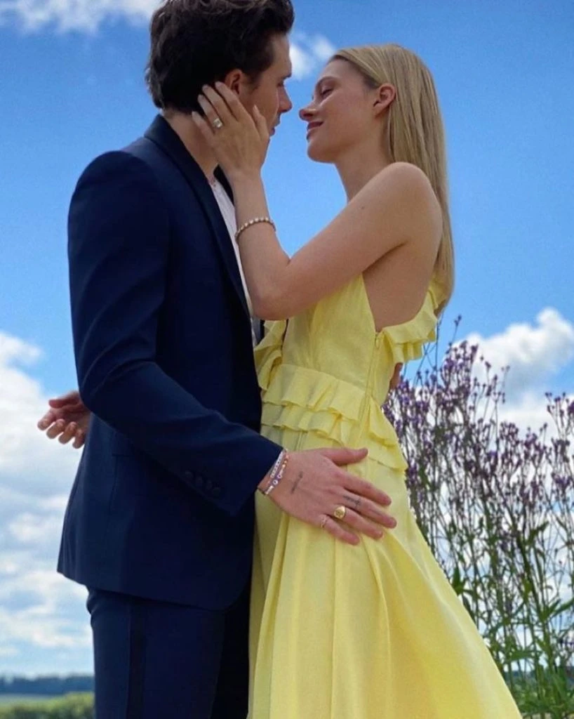 "No podríamos estar más felices de que Brooklyn y Nicola se casen. Os deseamos mucho amor y toda una vida de felicidad??Os queremos mucho", escribía Victoria Beckham al lado de la foto de Brooklyn, su hijo mayor, junto a la modelo y actriz inglesa con un vestido amarillo de gasa de su colección. Es que para su compromiso, Nicola eligió un diseño de Victoria Beckham y con ese gesto la conquistó.