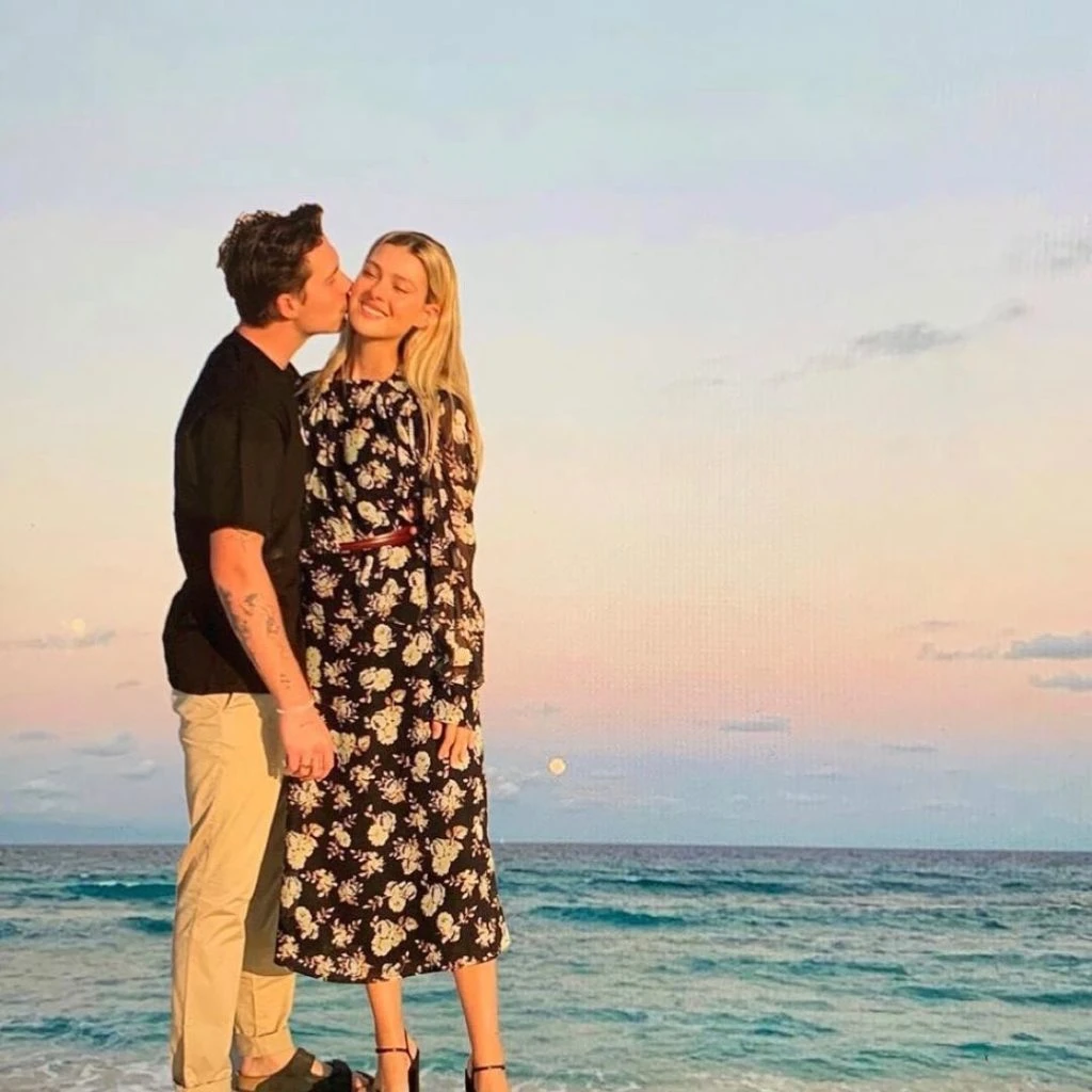 Victoria está encantada con su nueva musa. Hace poco compartió la foto de su hijo mayor con Nicola con el título: "La pareja más dulce al atardecer ? @brooklynbeckham y @nicolaannepeltz, ¡luciendo tan increíble con el vestido #VBPAW20 con estampado de rosas!".
