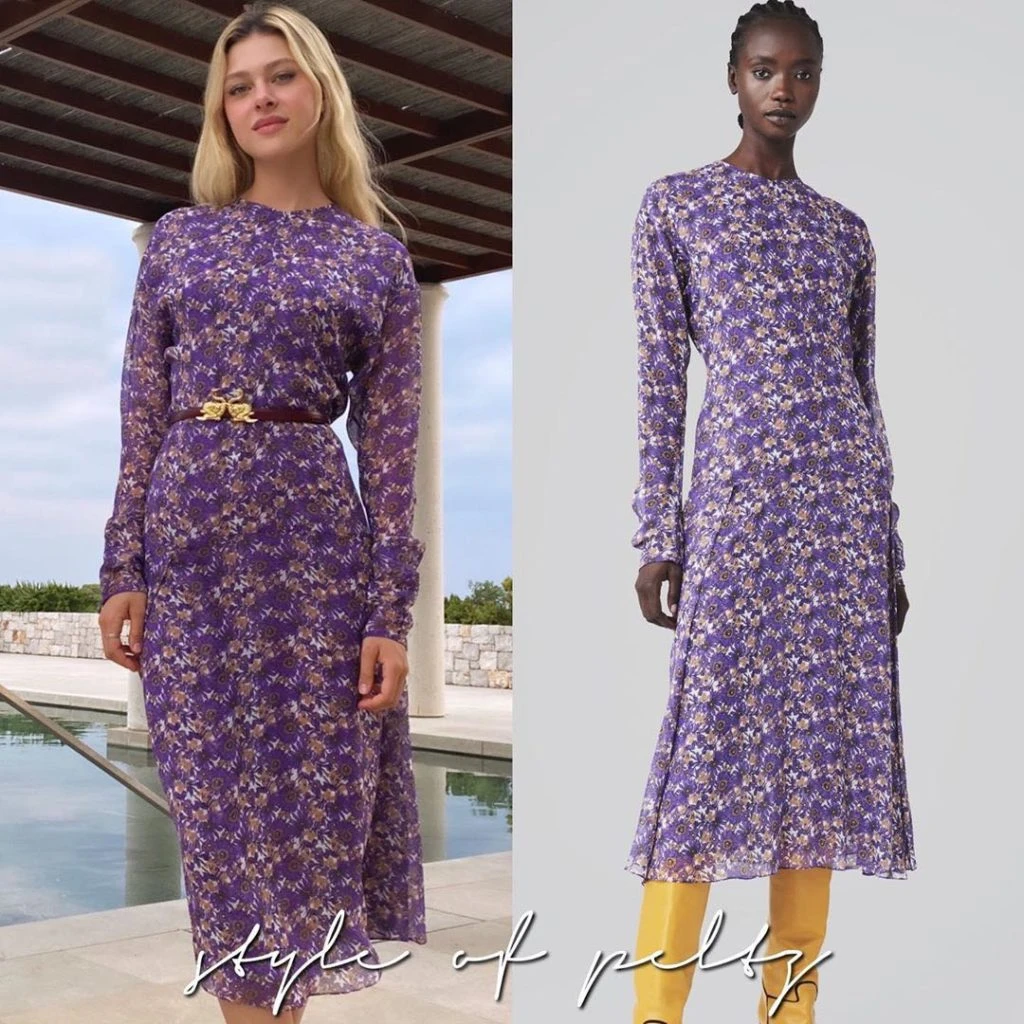 Y de repente, Nicola se convirtió en una embajadora de la marca. Estrenó un traje de chaleco y pantalón tizado, y dos vestidos de su nueva colección pre otoño/invierno 2021 que adelantan que la estampa floral seguirá siendo tendencia.