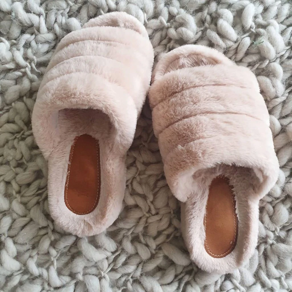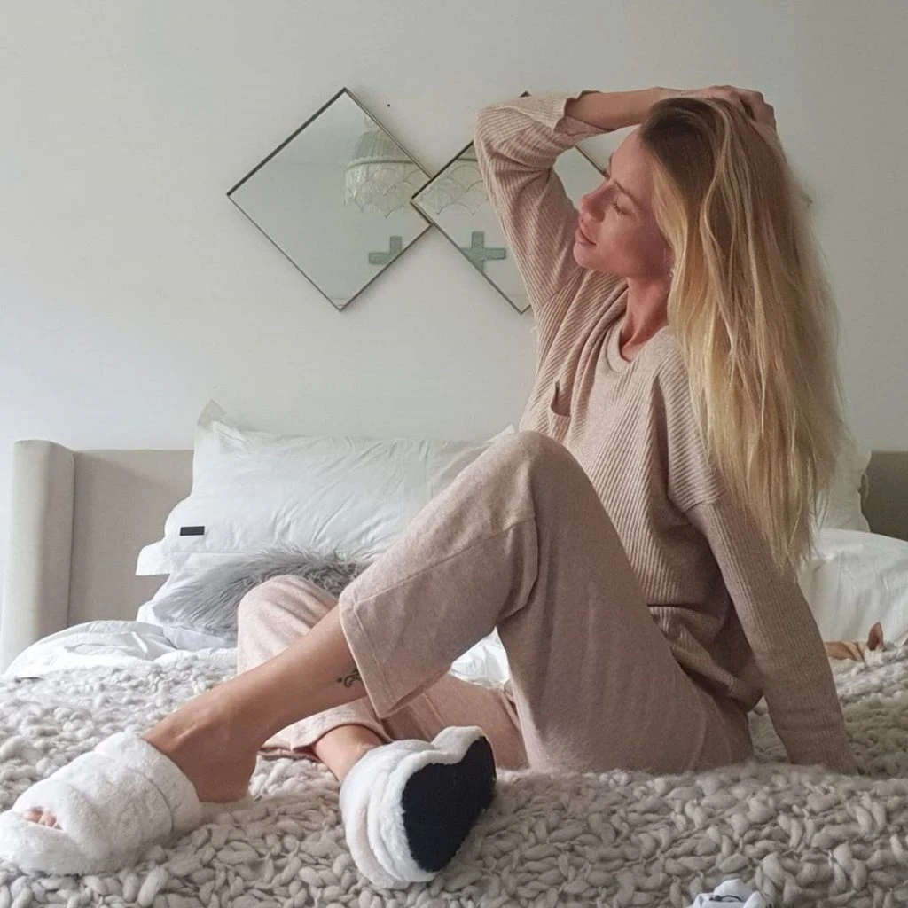 En casa, la modelo ya adoptó a las favoritas de la temporada de cuarentena: las pantuflas peluditas, furor internacional y que comenzaron a verse en nuestro país.
