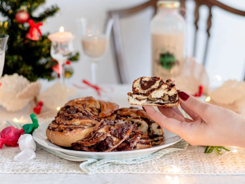 Babka (pan dulce trenzado) con Nutella y nueces