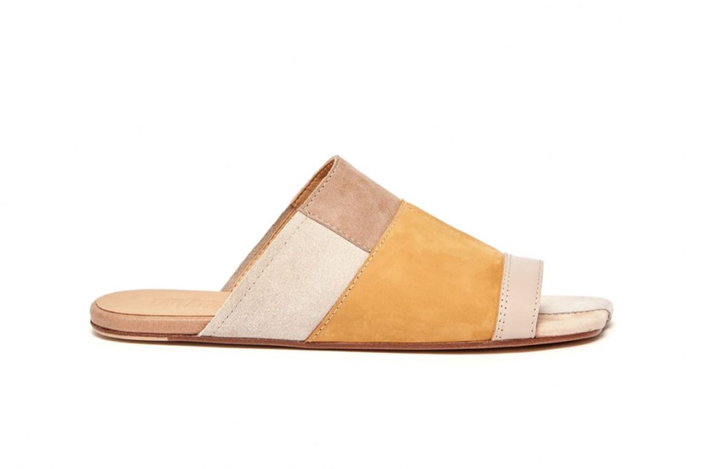 Piezas artesanales con retazos de gamuza, cuero y piel con una paleta de colores naturales como el beige, el camel, el nude y varios tonos bronceados.