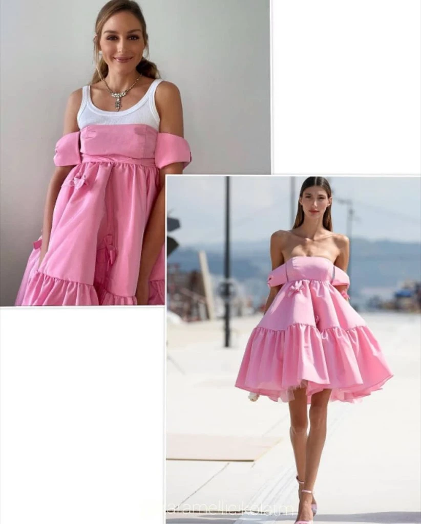 Olivia Palermo se enamoró de un vestido rosa, súper romántico y femenino, que si bien en pasarela se mostró como una propuesta super glamorosa, la it girl lo adaptó llevando una musculosa blanca debajo y lo aggiornó con un collar de strass.