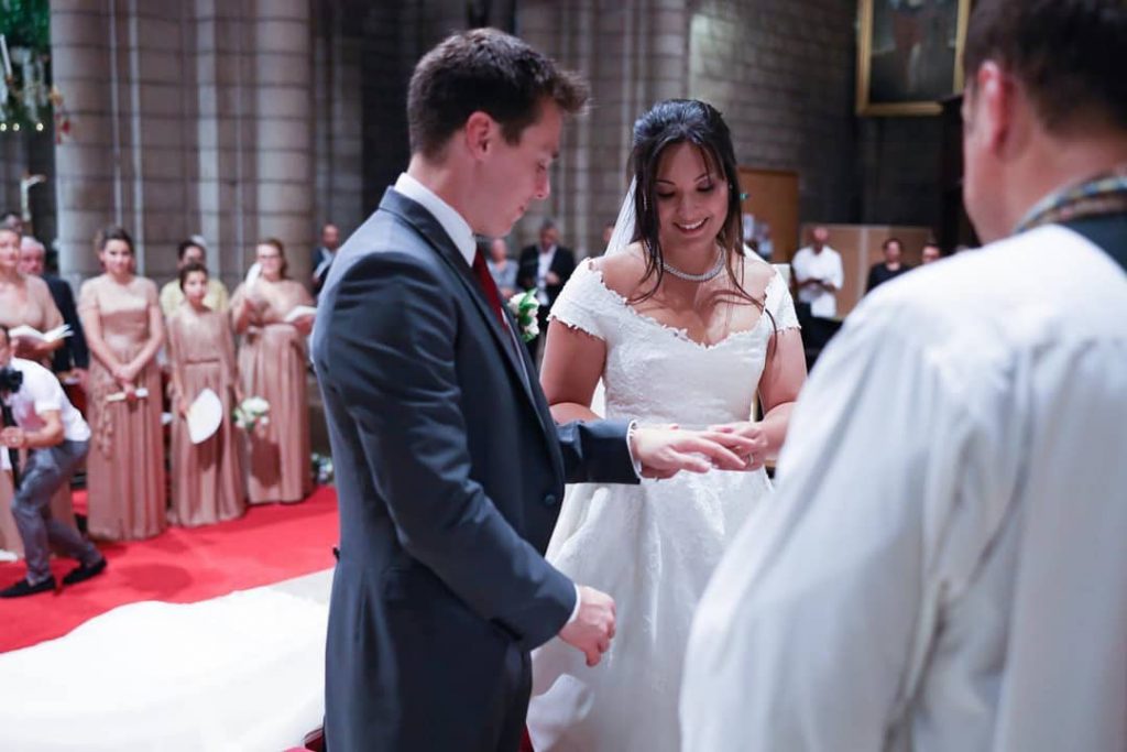 La novia llegó a la ceremonia en un lujoso Rolls-Royce decorado con flores, y llevando un vestido diseñado por el francés Atelier Boisanger. Como Marie se lleva muy bien con su flamante cuñada, Pauline, la novia le pidió que le diseñara el vestido para la ceremonia religiosa. Y la joven recurrió a Atelier Boisanger, un taller parisino que diseña vestidos de novia hechos a medida.