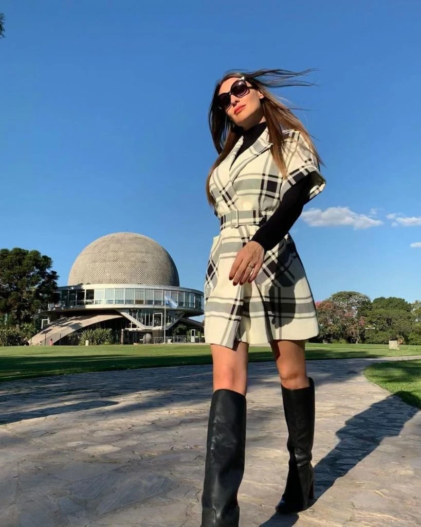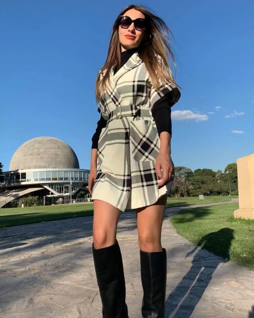 La estampa a cuadros es otra de las tendencias que pisan fuerte, así como las botas a la rodilla que complementan el look.