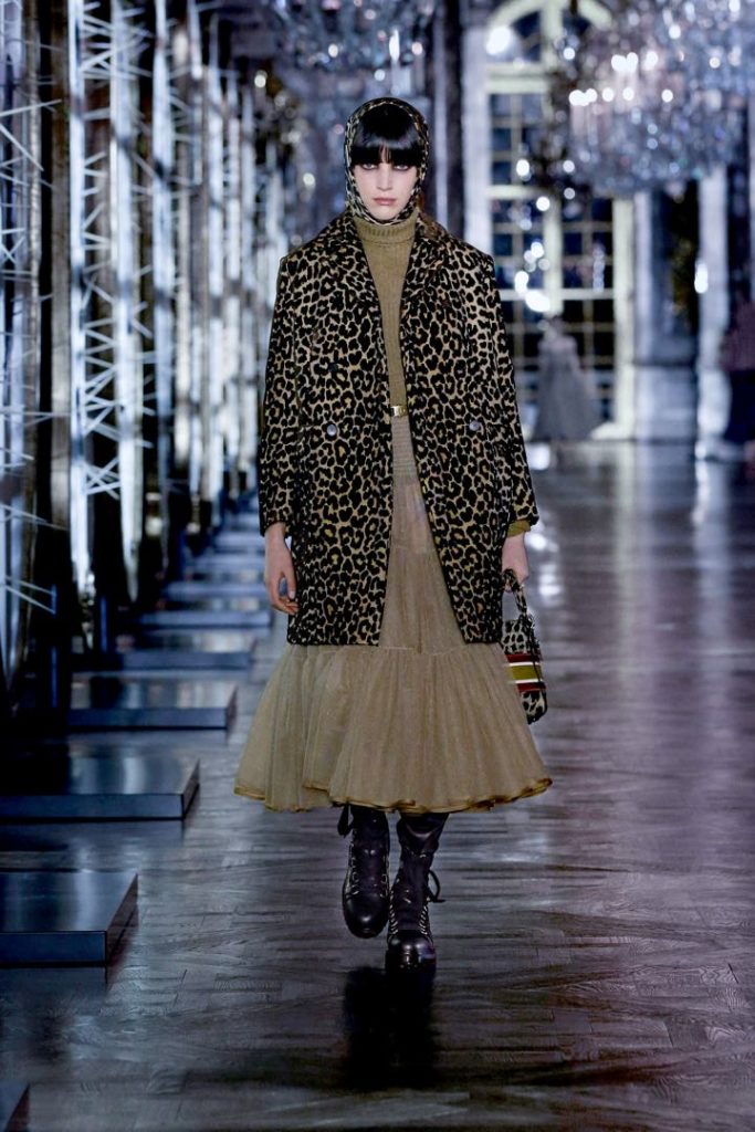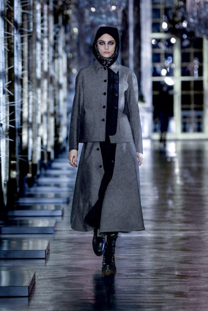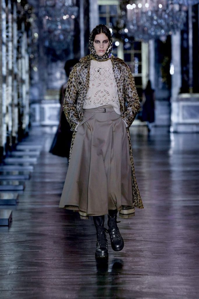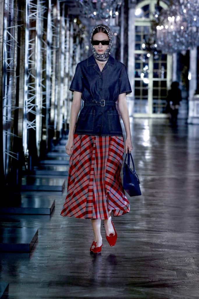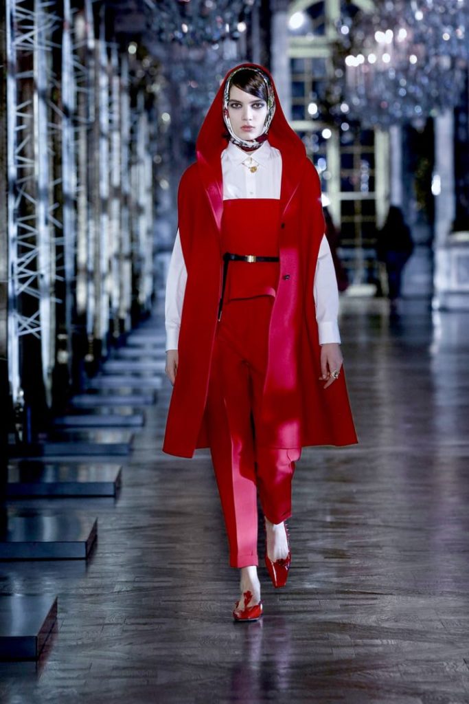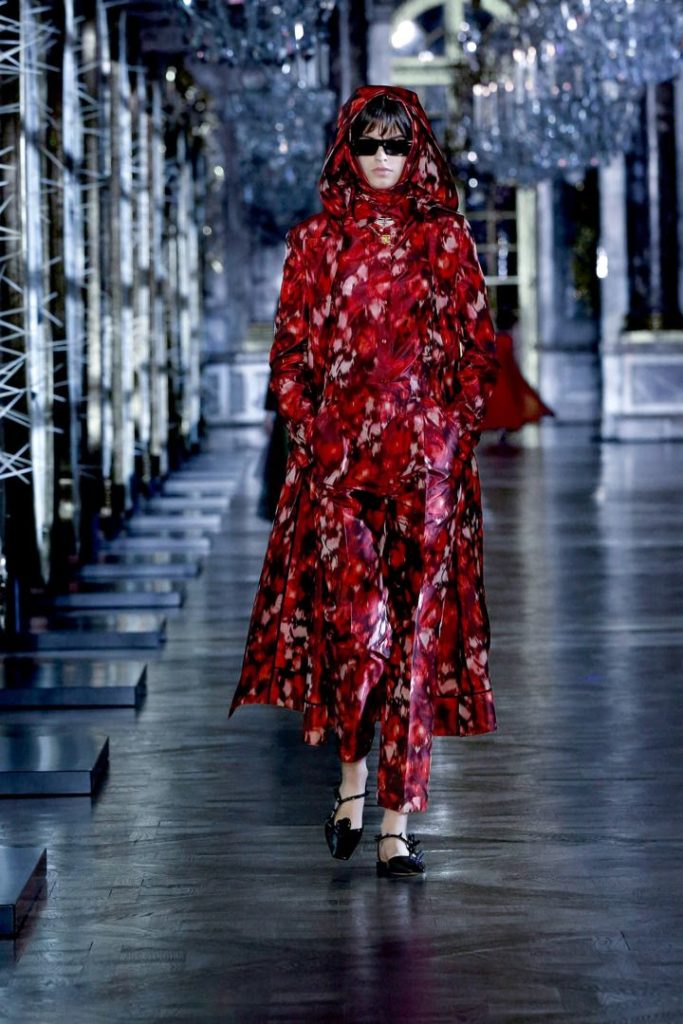 Hubo pañuelos en la cabeza y capuchas que hacían referencia a Caperucita Roja. "La silueta de los años 50 es super Dior. Lo transformo todo el tiempo. Para mí, no es una silueta fácil, porque no me siento como una mujer de los 50. Soy una mujer más juvenil, de los setenta, así que para mí trabajar una silueta de los cincuenta todo el tiempo es un trabajo muy duro, porque quiero hacer una silueta de los cincuenta que funcione con mi sensibilidad", admitió Chiuri.