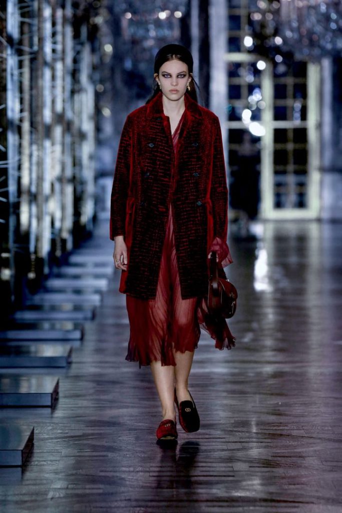 Chiuri mostró en su colección todo lo que la mujer necesita: desde looks de día para ir a la oficina hasta espectaculares vestidos de noche. Hubo rojos estridentes y muchas texturas que fueron desde el terciopelo estampado hasta jacquards de lamé y lúrex relucientes.