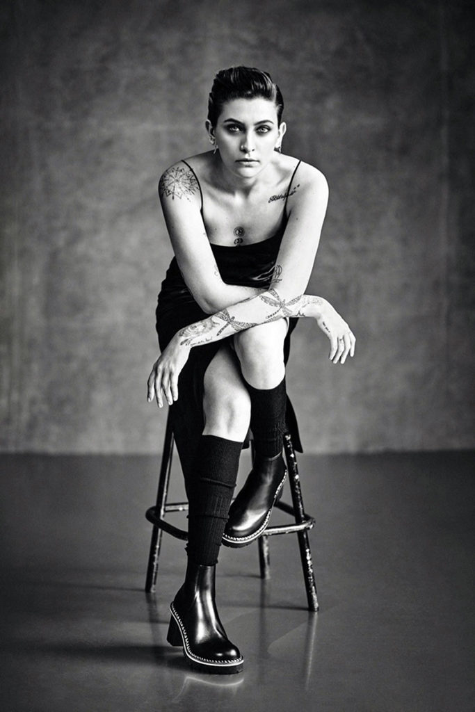 En las fotos tomadas por el reconocido fotógrafo de moda Paolo Reversi se despliega una versión firme pero serena de Paris Jackson, modelo y actriz que pasó por muchos episodios de depresión y adicciones.