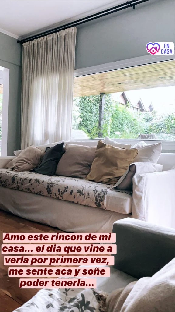 Más precisamente, uno de los lugares favoritos de su casa es el sillón del living que está debajo de una ventana. Un espacio súper luminoso, decorado con tonos neutros, como el gris y el crudo.