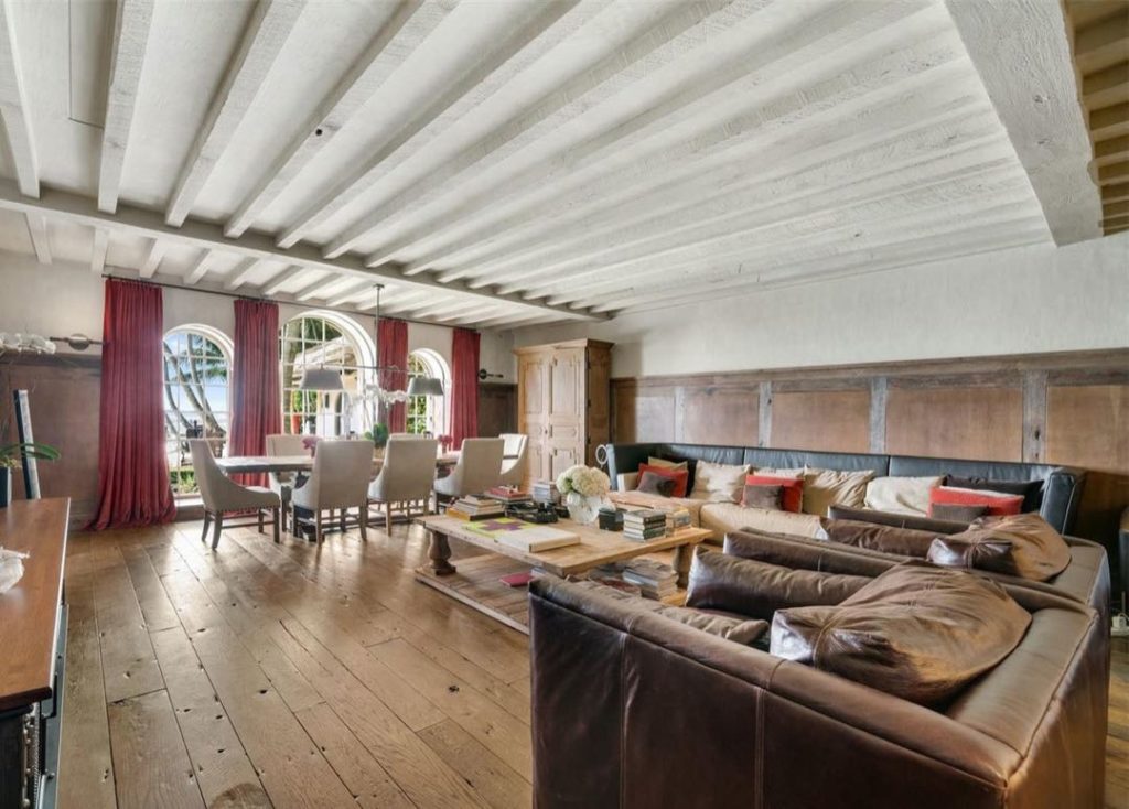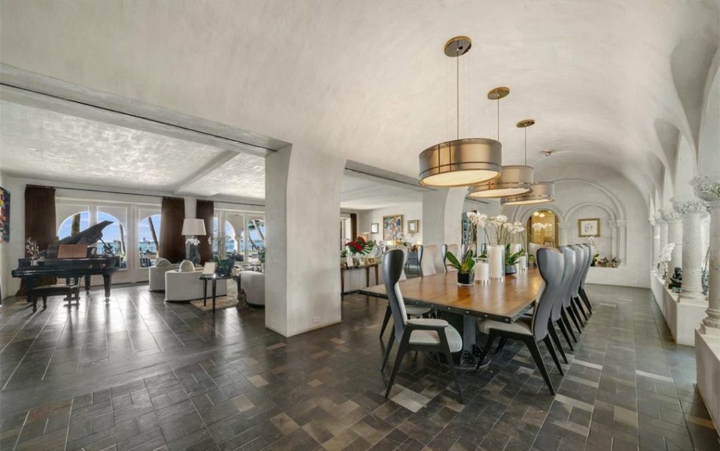 La casa que Phil Collins acaba de vender tiene un área social abierta e integrada: a través de una serie de arcadas de comunican y dialogan el living, con su piano, el hall de entrada y el solemne comedor.