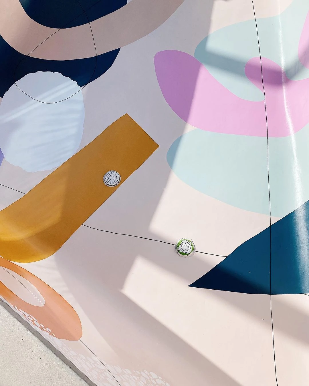 La diseñadora alemana pintó este enorme mural de colores que recorre una pileta ubicada en el desierto de California, más precisamente en Palm Springs, la ciudad americana famosa por sus aguas termales, los elegantes hoteles, los campos de golf y los spas.