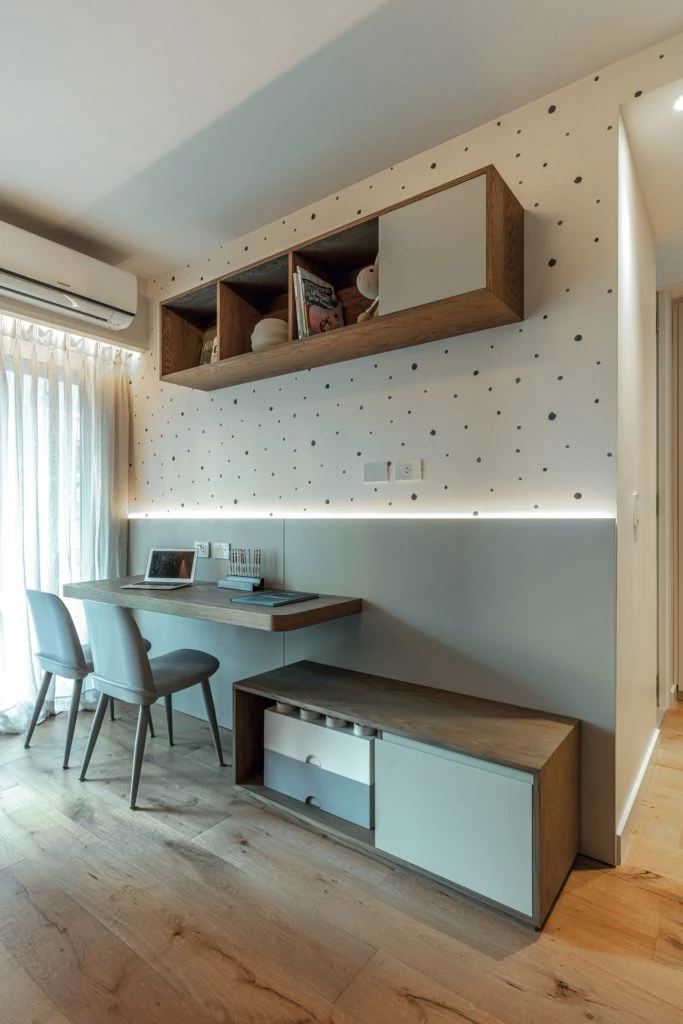 Los proyectos del estudio de Judith Babour tienen un lenguaje que pone el foco en los ambientes integrados, los materiales nobles de altísima calidad, los muebles de líneas modernas. Ese ADN recorre estos espacios infantiles.