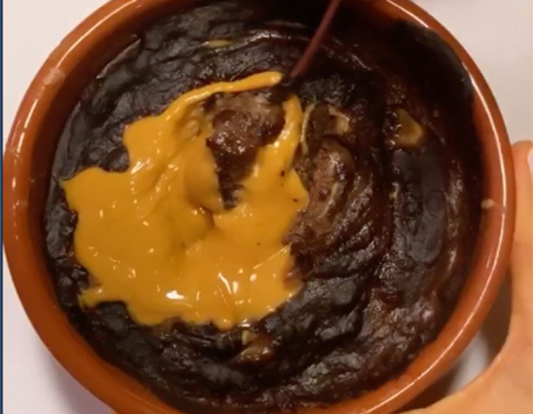 Llevalo unos 15’ al horno a 180 grados. Se puede comer todo fundido o dejar que se enfríe y queda más consistente.