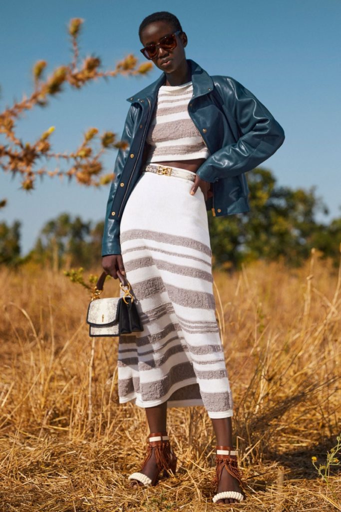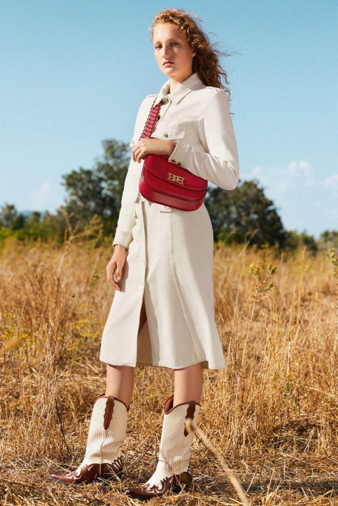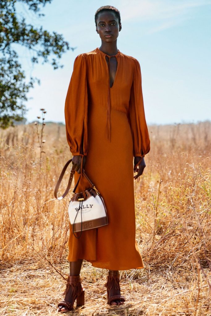 Bally presentó su última colección Primavera Verano 2021 a través de un video filmado al aire libre, con la naturaleza como marco. Las modelos posaron en un campo soleado prendas donde la mano artesanal estuvo presente. La etiqueta suiza hizo hincapié en trabajar el cuero no solo en accesorios, sino también en vestidos, chaquetas y pantalones.