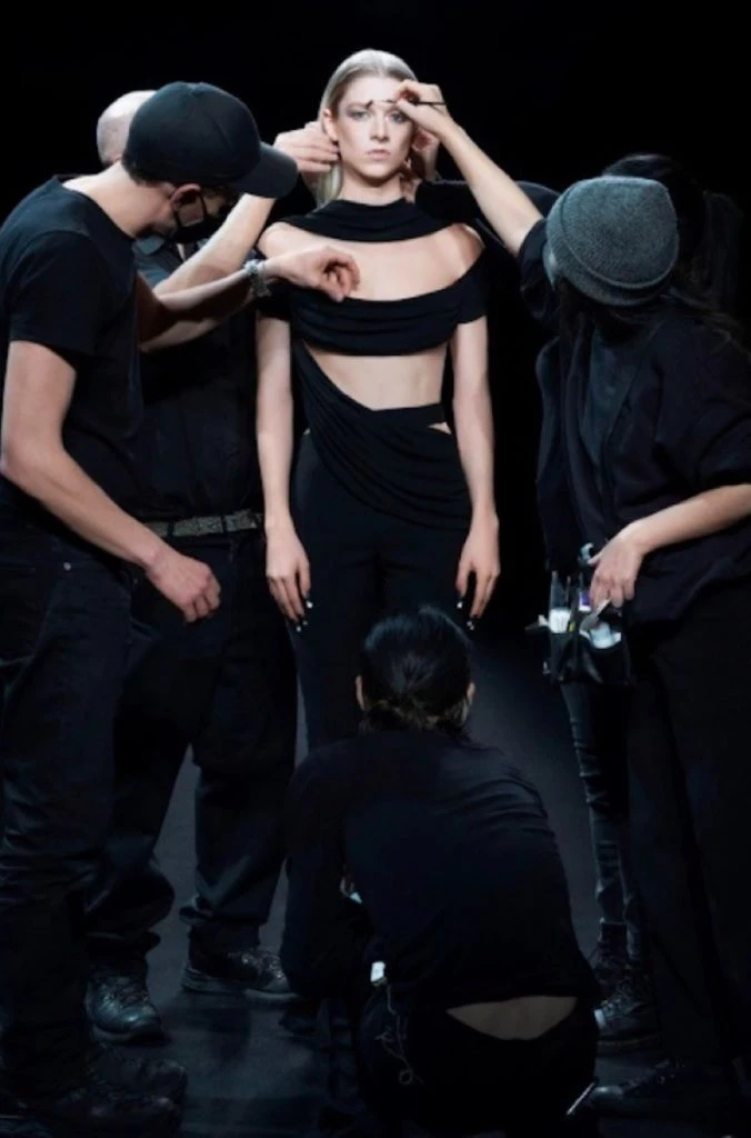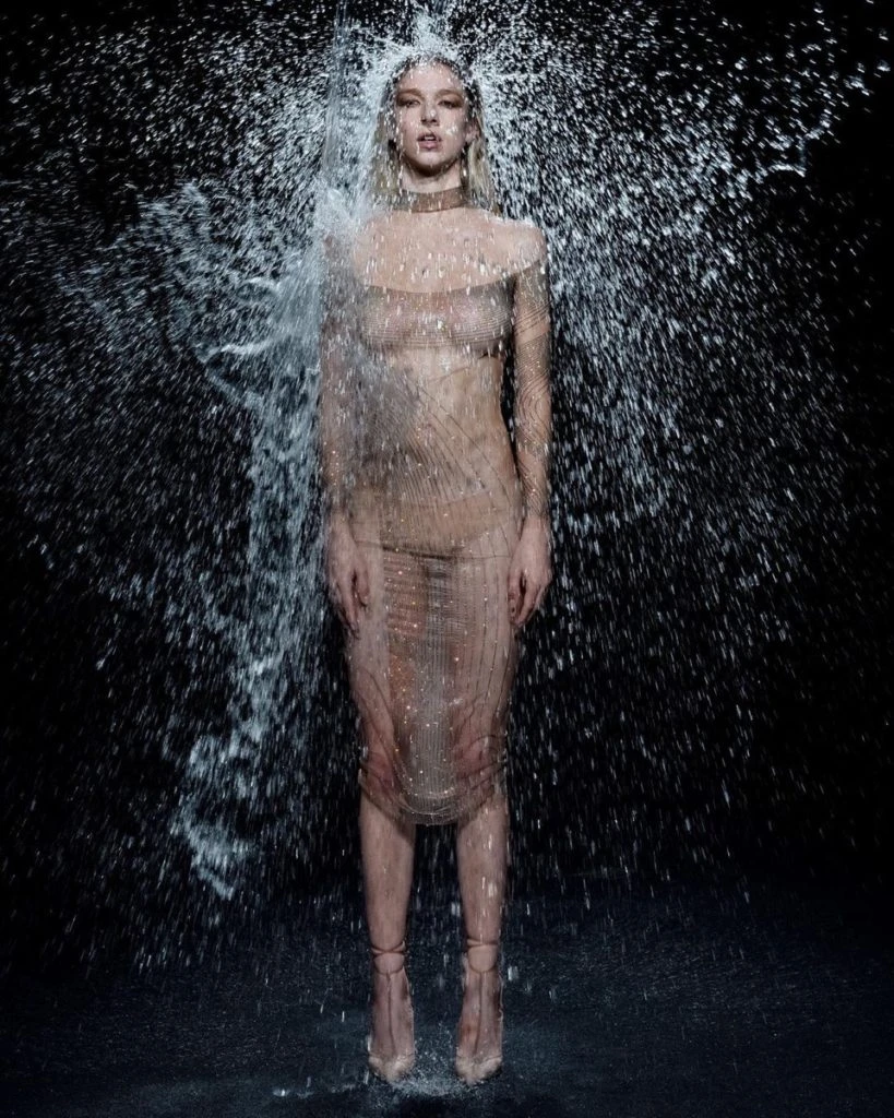 El desfile en cuestión se trataba de un video de 7 minutos que fue grabado completamente al revés y que comienza con Bella Hadid haciendo acrobacias. Hunter Schafer, Irina Shayk y Dominique Jackson, entre otras, formaban el especial elenco del desfile.