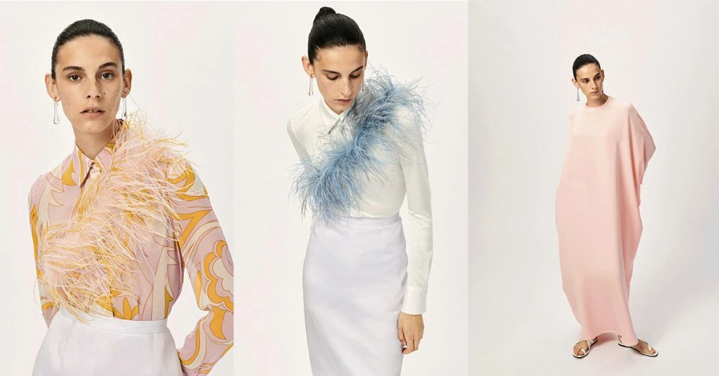 Detalles de pluma adornan las prendas más sofisticadas, revalorizando la feminidad.