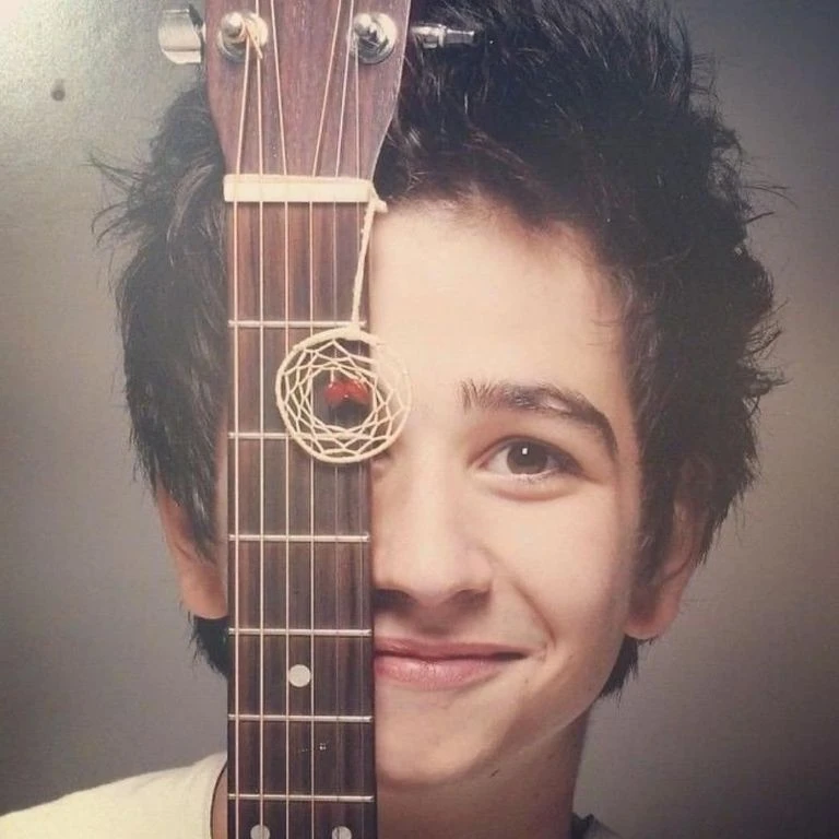 Después de esa historia, sus fans sacaron a la luz una foto inédita del colombiano, en donde aparece sin su inconfundible bigote y barba. En la imagen Camilo se ve muy pequeño cubriéndose un ojo con el mástil de una guitarra.