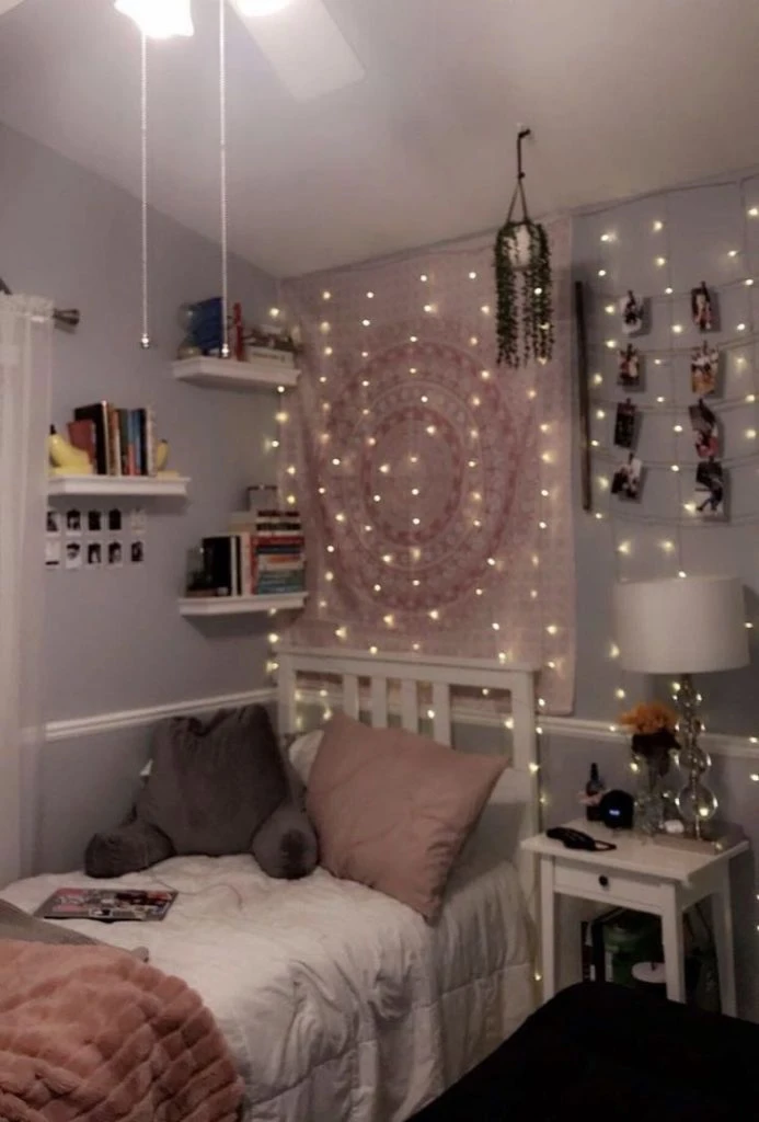 Guirnaldas de luces o tiras de leds hacen a los cuartos aesthetic. También se pueden ver cuadros o carteles en neón. Y el must: el proyector de luz estelar LED, que le da al cuarto un estilo gamer.