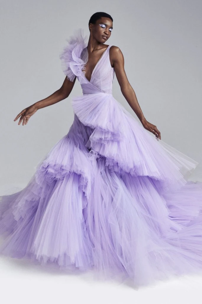 En Ralph & Russo Alta Costura FW 21 predominan los vestidos voluminosos, vaporosos y otros más estructurados y al cuerpo.