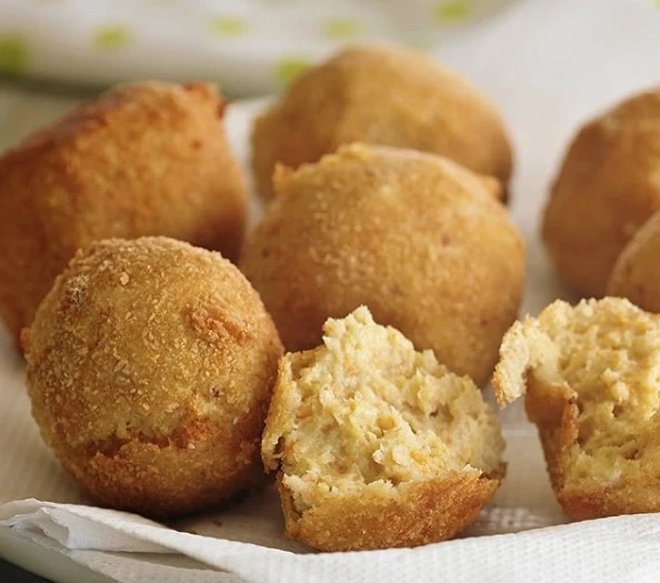 - Formar bolas, pasar por harina, huevo y pan rallado.