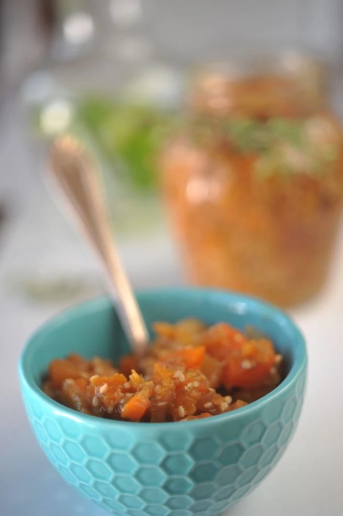 - Poner todos los ingredientes en una cacerola mediana y cocinar a fuego moderado hasta que los duraznos se desarmen (15 minutos aproximadamente). Apagar el fuego, dejar entibiar y guardar el chutney en frascos esterilizados.
