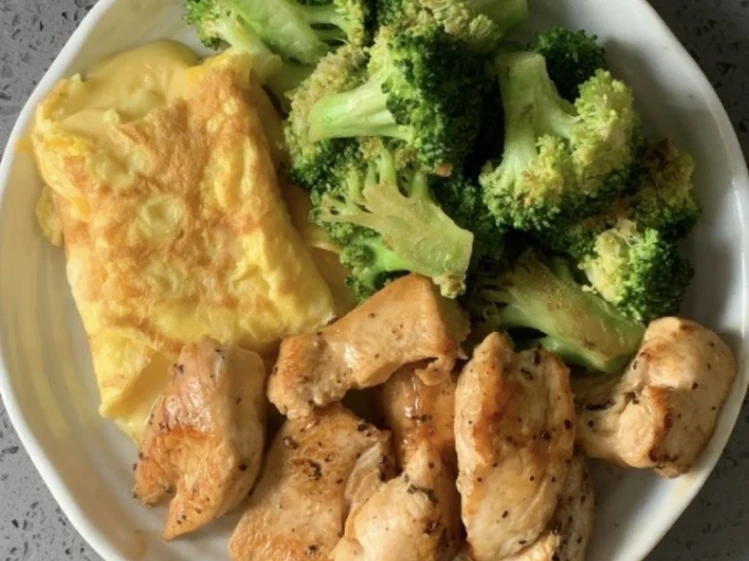 Otro ejemplo, si entre otra de tus opciones de proteína tenés pollo, entre los carbohidratos tenés arroz y de vegetales tenés lechuga, tomate y cebolla, podés hacerte un arroz con pollo y una ensalada.