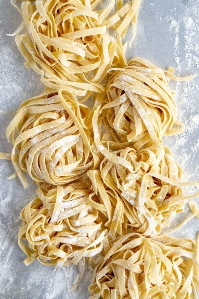 Paso 5: Poné a hervir agua con sal en una olla grande. Cociná los tallarines frescos durante 7 minutos hasta que estén listos. Colalos y reservá.