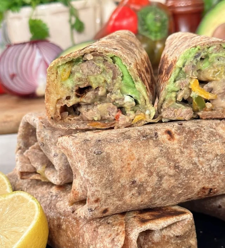 Burritos integrales de vegetales y carne