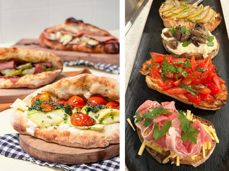 - 1. Mortadela, queso fresco o mozzarella, rúcula, cherrys asados o confitados