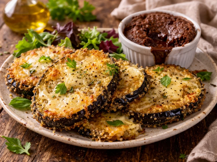 - Plato principal: Milanesas de berenjena crocantes con queso