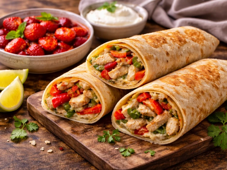 Plato principal: Wraps calientes de pollo y verduras con aderezo cremoso