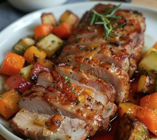 Bondiola de cerdo al horno con mostaza y miel + vegetales