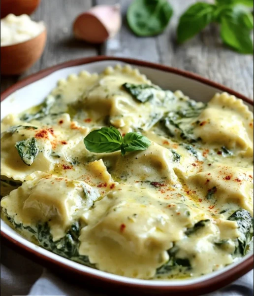 Ravioles con crema de espinaca y queso