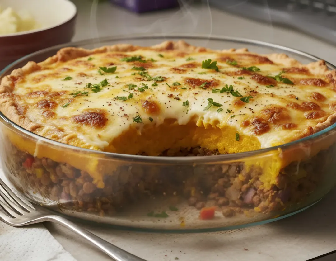- Paso 4: Colocar en una fuente para horno una capa de lentejas, arriba una capa de puré y por último el queso. Cocinar en un horno moderado precalentado por 25 minutos.