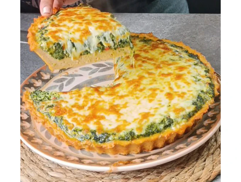 Tarta de espinaca y choclo con base de pollo