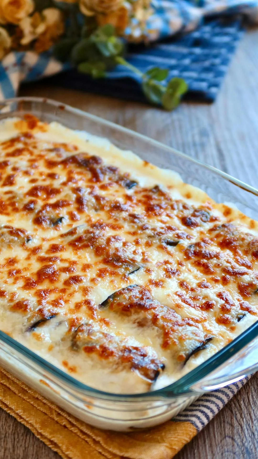 Canelones de berenjena con pollo