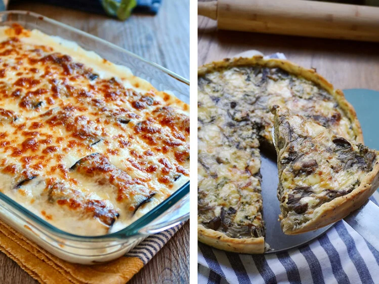 Tarta casera de cebolla, hongos y queso azul