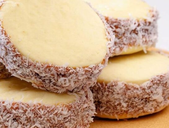 4- Armar el postre, podés embeber en el almíbar de los duraznos las vainillas y forrar la base de un molde grande o de varios pequeños.